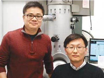 미국 버클리국립연구소 연구원 전기준 씨(왼쪽)와 이종훈 씨.‘꿈의 소재’로 꼽히는 나노 그래핀을 이용해 DNA 등 미세 물질을 원자 크기까지 직접 볼 수 있는 기술을 한국인 과학자들이 개발했다.미국 버클리국립연구소 이종훈 전기준 연구원은 10일 “두께가 약 1Å(옹스트롬·1Å는 100억분의 1m)으로 매우 얇은 그래핀 소재 위에 DNA나 고분자를 올려놓고 최첨단 투과전자현미경(TEM)으로 실시간 영상을 찍는 데 성공했다”고 말했다. 이번 연구는 미국화학회가 발간하는 국제학술지 ‘나노 레터스’ 3월..